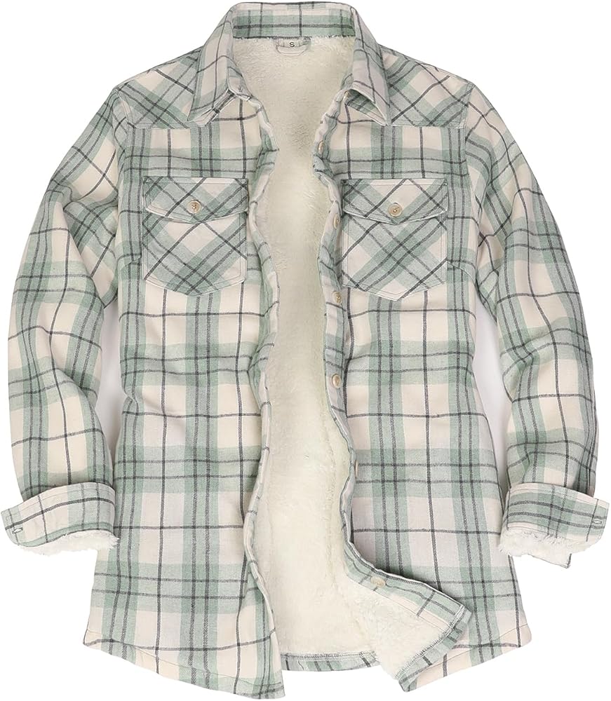 HAND POCKETS LIKE MEN'S FLANNEL: This plaid flannel jacket not only has two chest pockets with flaps, but also two side hand pockets just like men's flannel shirts. it is good for someone that is always cold in the winter.