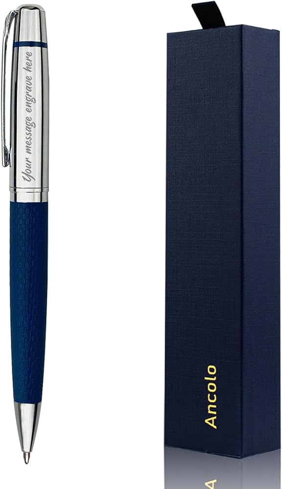 Ancolo Personalized Silver Chrome Ballpoint Pen - Stunning Luxury Pen with PU Leather, Custom your Message, Name. Gift Set for Men & Women, Professional, Executive Office, Nice Pens