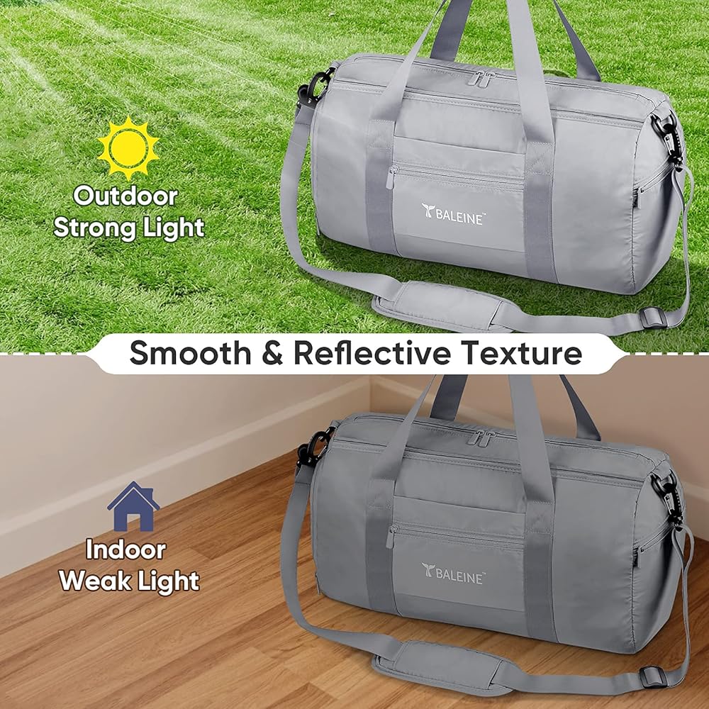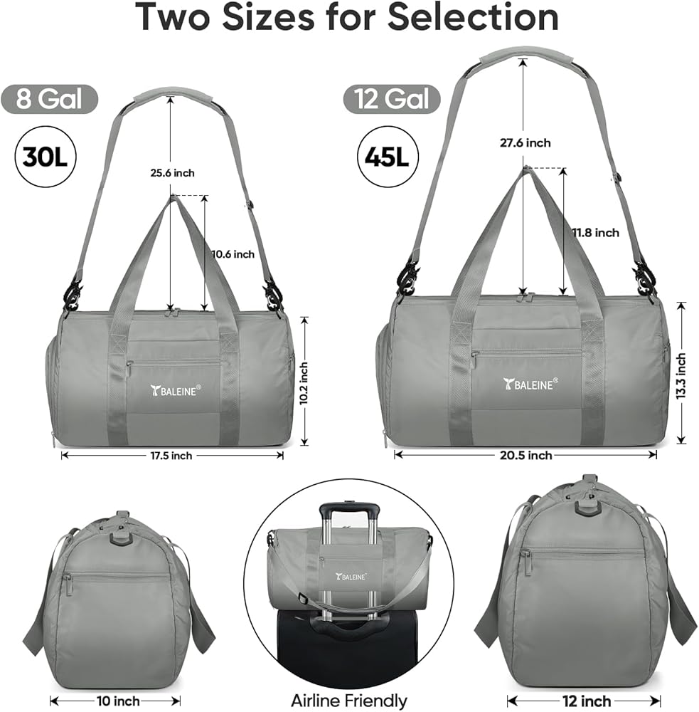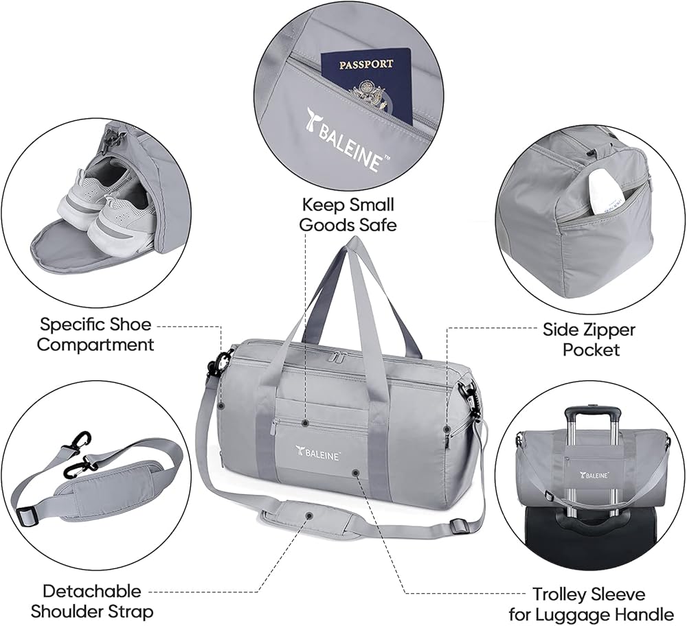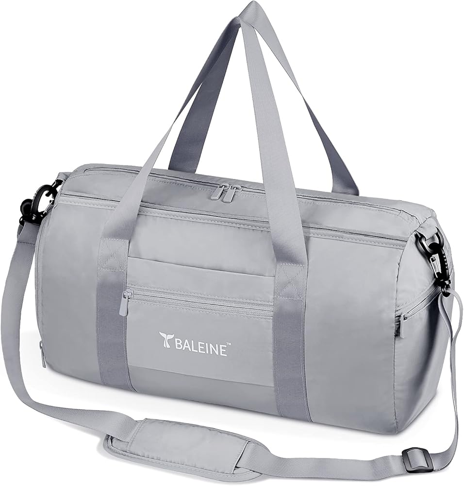 BALEINE Gym Bag for Women and Men, Small Duffel Bag for Sports, Gyms and Weekend Getaway, Waterproof Dufflebag with Shoe and Wet Clothes Compartments, Lightweight Carryon Gymbag (Silver)