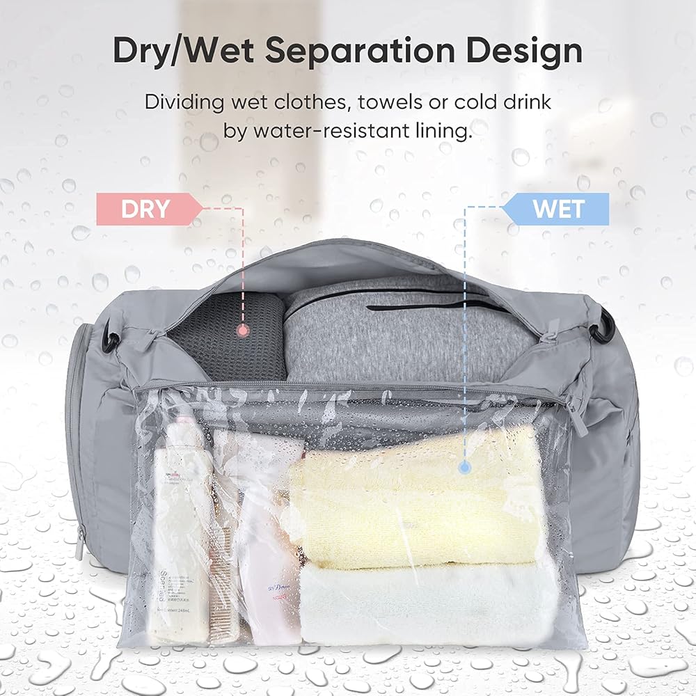 [COMPARTMENT FOR SHOE, DRY & WET CLOTHES] Separate compartment to store your sneakers and shoes, swimsuits, toiletries, and wet towels. Additional storage pockets to organize your items and gym accessories.