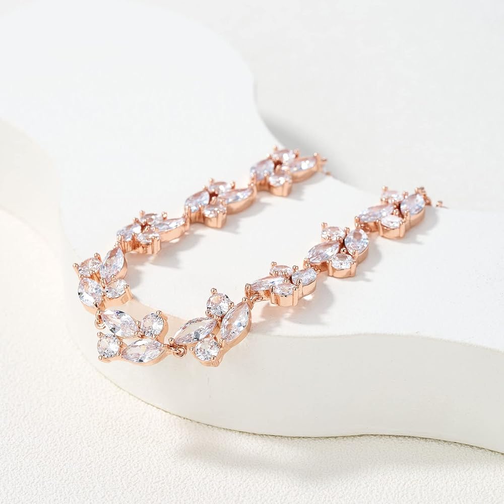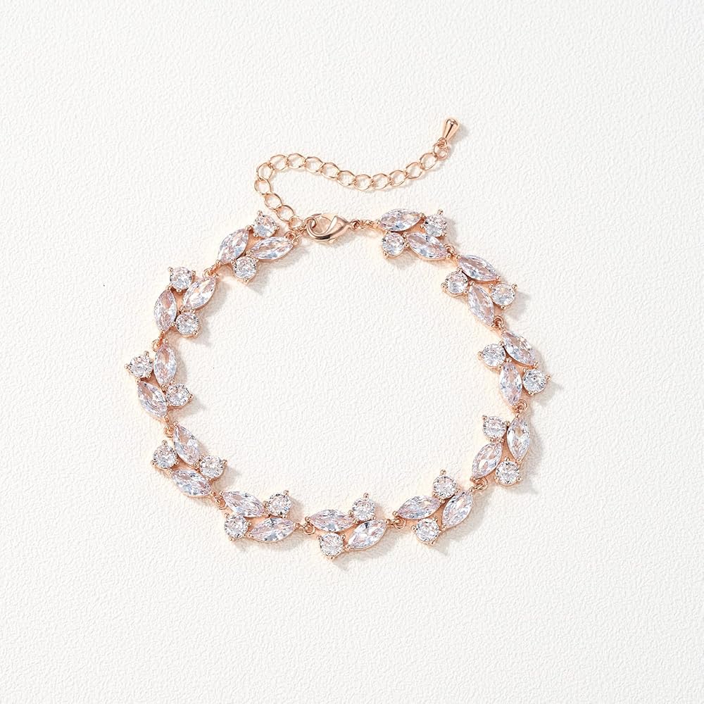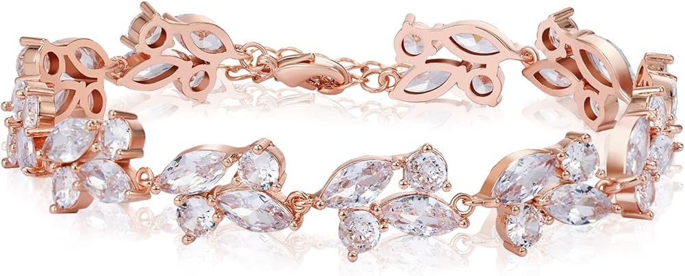 【Design and material】This exquisitely crafted bracelet boasts AAAAA grade cubic zirconia stones in a "leafy" pattern of marquise cuts,classic and timeless design.