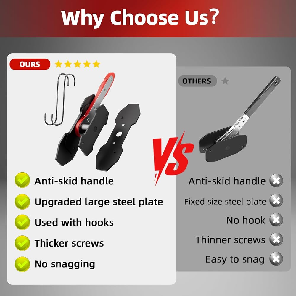 【Simple and Convenient Design】Our caliper compression tool includes: sturdy tool, 2 super strong magnetic steel plates with safety slots and 2 protective hooks. The steel plates fit into place in seconds! The hooks ensure safe braking. The ratchet has a simple flip switch that changes direction instantly. It is very intuitive and anyone can quickly master this brake caliper press tool.