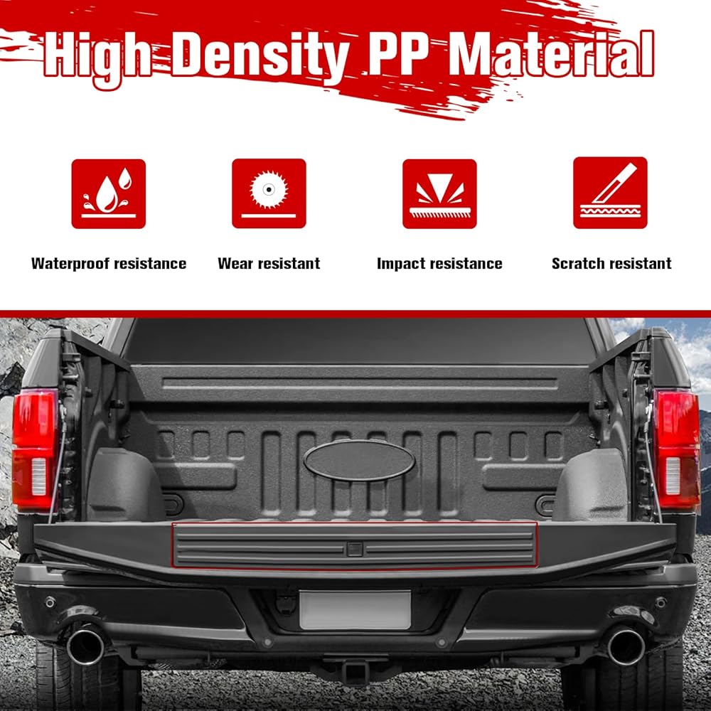 Durable PP Material: Our f150 tailgate cap is made of high-quality thickened PP plastic, with a smooth and textured surface, excellent wear resistance, and scratch resistance. It is not easily weathered, deformed, or cracked, and can provide long-term protection for your F150