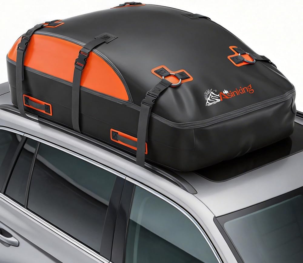 【2024 NEW VERSION】With all features fully upgraded, we could confidently promise that our Asinking "Ultimate Version" Rooftop Cargo Bag will impress you with it's top-rated quality, durability and easy installation. Not only offering extra car storage room, but will protect your cargo from all harsh elements during drive, even downpours. Also, our UNIQUE new features will add more security to defeat all possible issues, especially for a long cross-country trip.