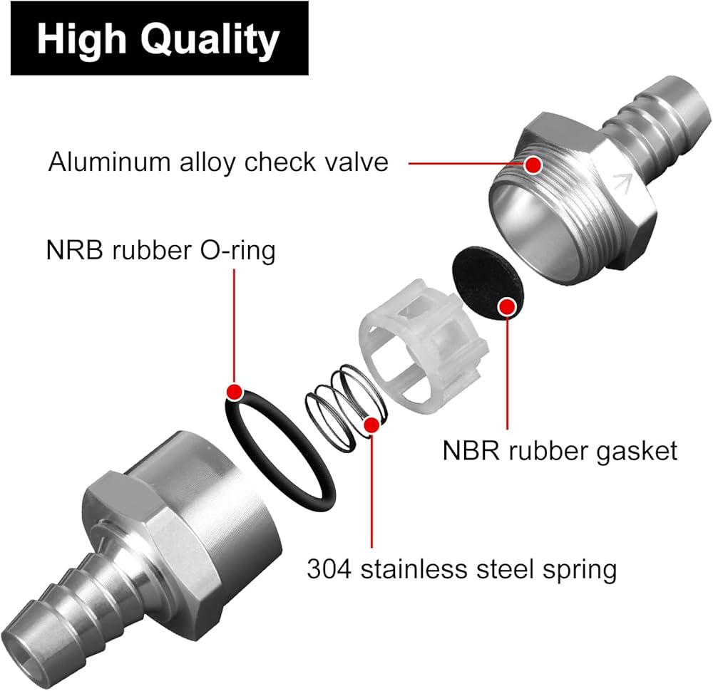 - [مادة] صمام فحص الوقود مصنوع من جسم سبيكة الألومنيوم ، وينبخ الفولاذ المقاوم للصدأ ، وحشية مطاطية NBR وحلقة O