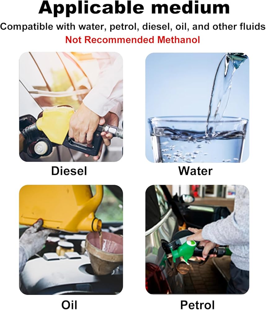 - [متوسطة] تناسب الغاز والبنزين والديزل والماء والهواء وغيرها من السوائل (لا ينصح بالميثانول)