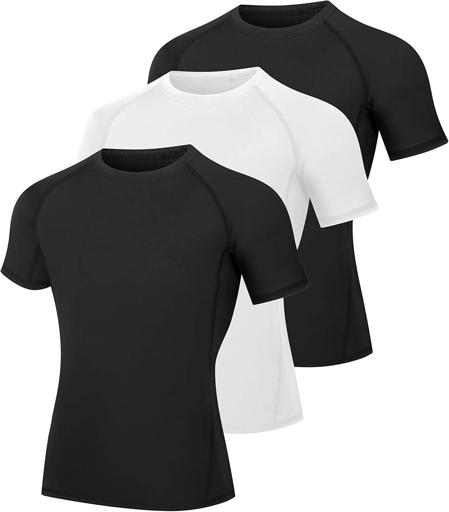 Performance Boys Shirts: NebuKinex 3 pack of athletic boys compression shirts short sleeve are made of 85% polyester and 15% spandex fabric, ideal for active boys who need versatile, durable athletic wear for daily training, games, or casual wear.