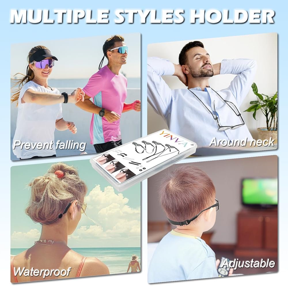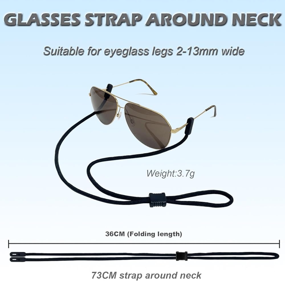 【More Wearing Options】Two types of tailless adjustable lanyard ropes can be adjusted and fixed according to the size of the head, ensuring that the glasses are fixed and do not slip off when wearing them. There are two other types of strap cord installed on the eyeglass legs and arms, which allow you to hang them more loosely around your neck and keep them on your chest for easy wearing at any time. There are also 12PCS glasses grips ear cushion for you. There is always a style that suits you.
