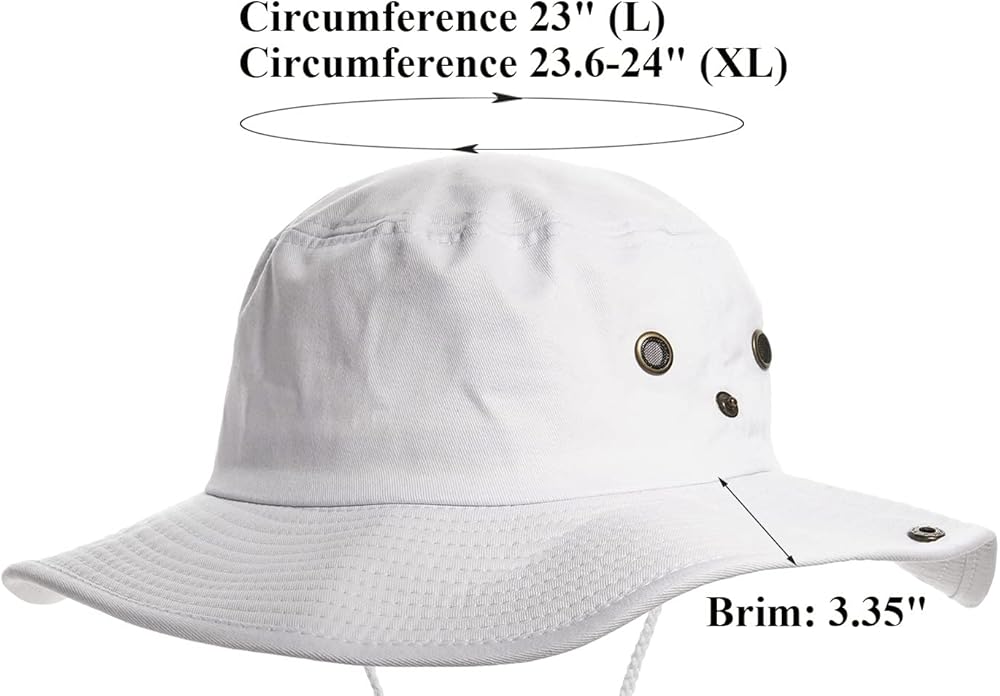 HAT SIZE - XL- The solid cotton wide brim bucket hat circumference Approx 24" /61cm; L - Approx 23"/58-59cm; brim Approx 3.07" it also suit for men and women.