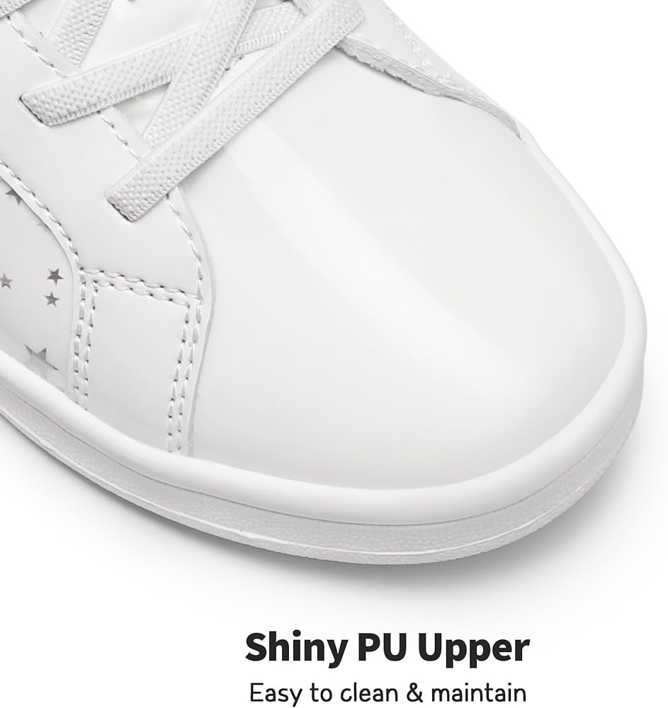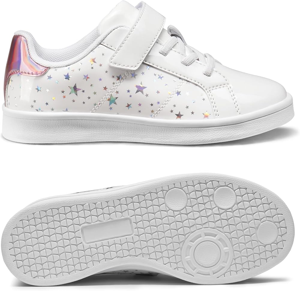 Trendy Design: These kids' sneakers have a patent leather upper that is decorated with stars that are perfect with holographic effects that kids will love.