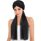 Elegant Chemo Caps with Extra-Long Chiffon: This chemo headwear for women features a luxurious 47"x18" attached chiffon scarf, offering multiple stylish tying methods—wrap, braid, or knot for a feminine, confident look. Perfect for hair loss women seeking a graceful, uplifting accessory during treatment.