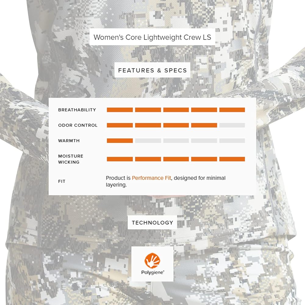 SITKA WOMEN'S HUNTING CORE LIGHTWEIGHT CREW LONG SLEEVE SHIRT