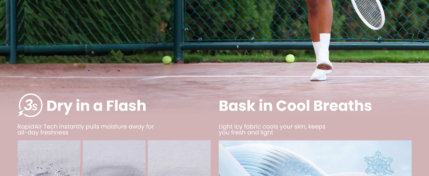 🎾Dual-Layer Softness & Second-Skin Feel: Featuring a dual-layer design, the outer layer provides quick-dry cooling, while the inner layer mimics the softness of cotton. This ultra-soft fabric hugs her like a second skin—breathable and gentle for all-day comfort during sports.