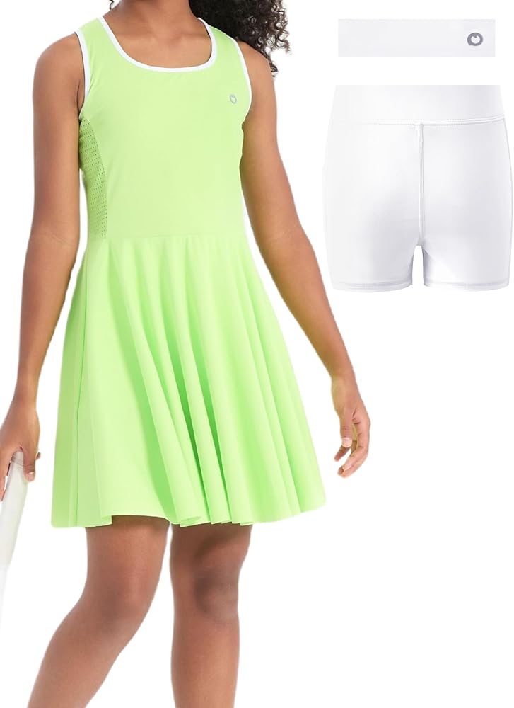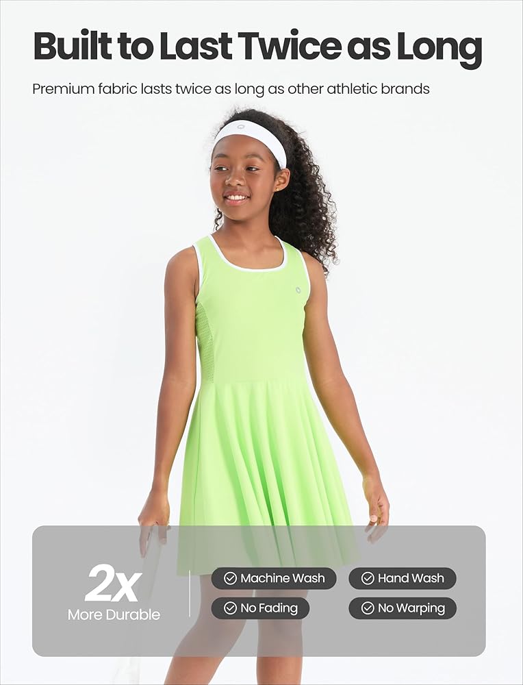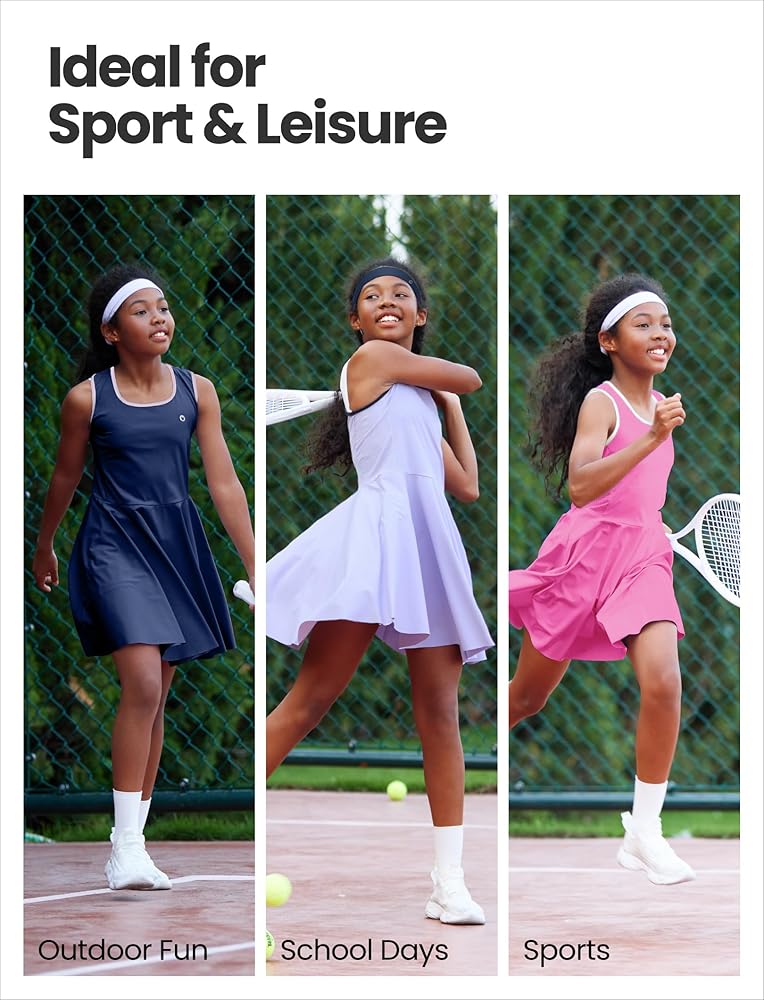 🎾Quick-Dry & UV Protection: Made with 𝐏𝐚𝐭𝐏𝐚𝐭 𝐑𝐚𝐩𝐢𝐝𝐀𝐢𝐫-𝐂 𝐅𝐚𝐛𝐫𝐢𝐜, this girls' tennis dress set offers UPF 356 sun protection, shielding your child from UV rays. The lightweight, breathable material wicks away sweat, ensuring your girls stay cool, dry, and comfortable during outdoor adventures.