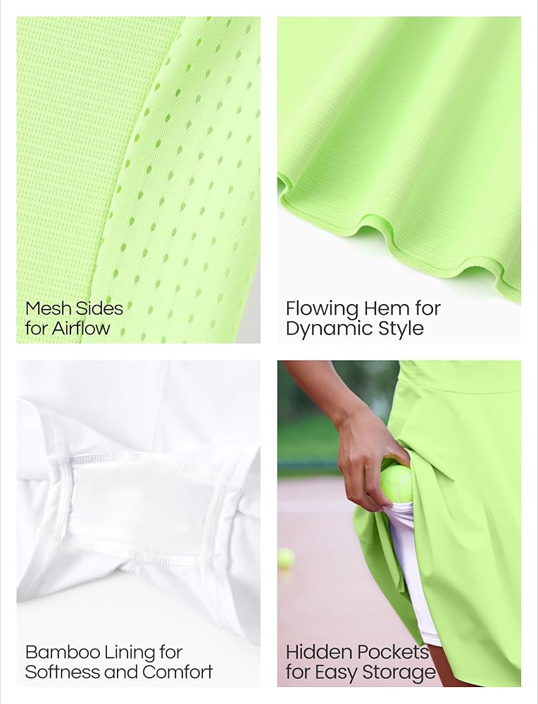 🎾Bamboo Viscose Shorts with Hidden Pocket: The included shorts are lined with bamboo viscose for enhanced softness and hygiene. Designed with a hidden pocket, they offer convenient storage for small essentials, blending practicality with style for both sports and everyday activities.