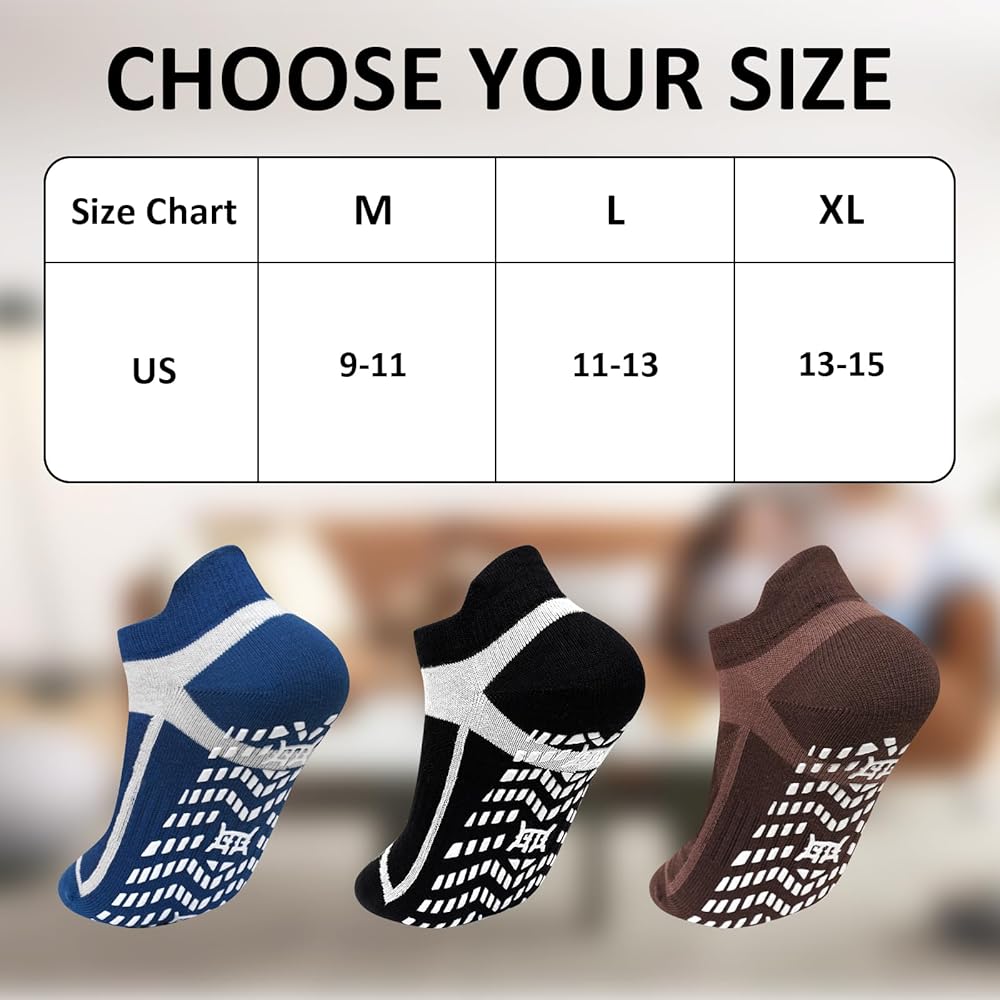 【Suitable for a Wide Range of Users】Whether you're an office worker, fitness enthusiasts, or someone who spends long hours standing or walking, these non slip socks for men are designed to provide necessary comfort and support. They are also ideal for elderly, especially those who are concerned about falls or have limited mobility. The anti-slip design and heel wrapping improve foot stability, making these socks a perfect choice for those who need extra support.