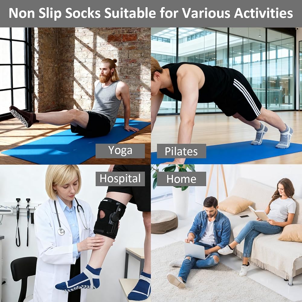 【Ideal for Various Activities and Daily Use】These grippy socks for men are perfect for a variety of activities, including yoga, pilates, running, hiking, walking, and gym workouts. The breathable design keeps your feet dry and comfortable, making them suitable for both high-intensity exercise and long outdoor activities. Additionally, they are a great option for daily walking or office use, providing comfort and support for all-day wear.