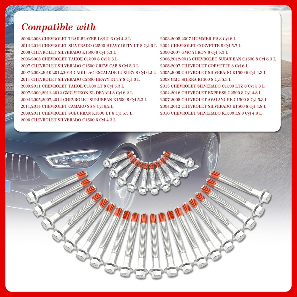 Feature:Increase stability and control for enhanced driving experience;Design with exacting tolerances increased durability;Application-specific design ensures correct fitment;Follow manufacturers recommended tightening sequence, and procedures for head bolt replacement