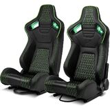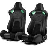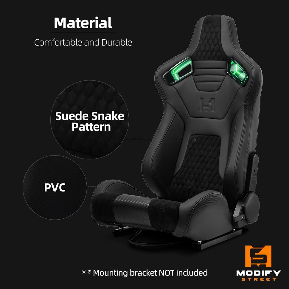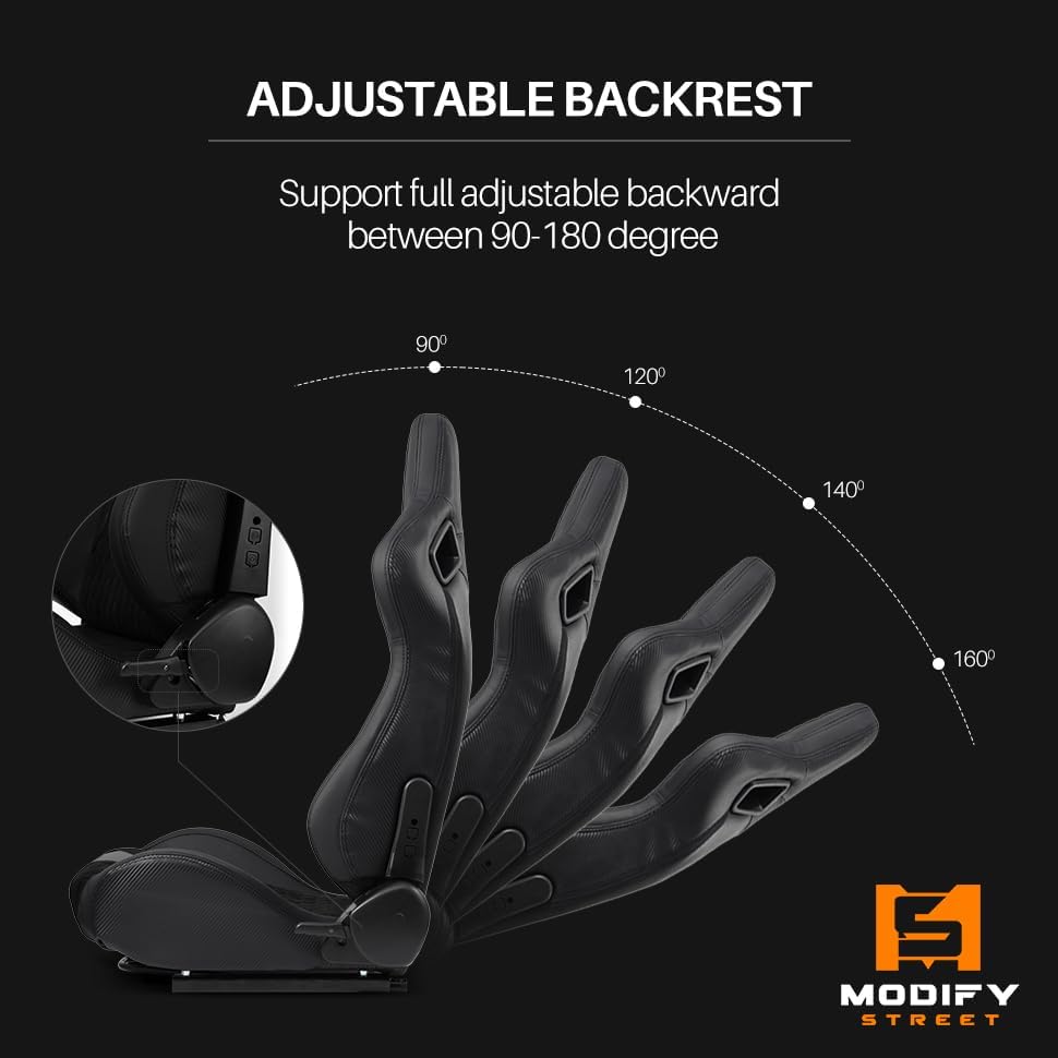 ModifyStreet [Neon Racer] Pair of All Black PVC w/Suede Snake Pattern & Rear Carbon Fiber Style leather Reclinable Racing Seats W/Sliders