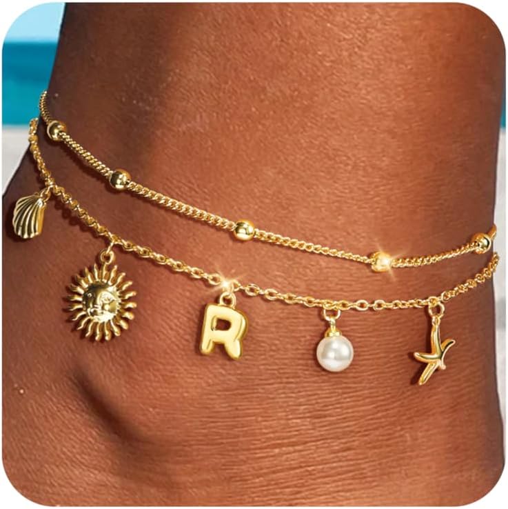 【Unique Design】The gold anklet features initial pendant with seashell, starfish, sun and pearl to form a layered initial anklet, which can greatly show your elegance and beauty, and add brilliance to your daily matching. This gold anklet is suitable for various occasions, especially for summer, beach, vacation, and party lovers.