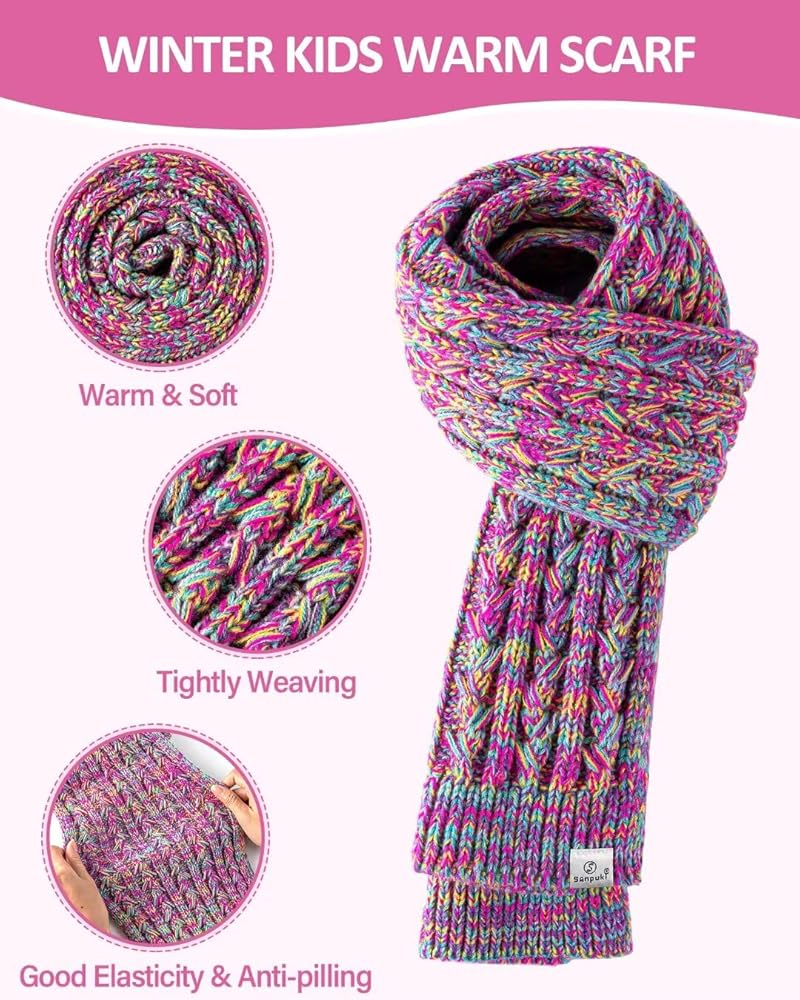 【Ideal for Cold Weather】 Our stylish Kids Winter Hat Gloves Scarf Set is tailored for youngsters who seek warmth and vogue in the frosty season. The matching knitted hat, scarf, and gloves boasting wrist elastics make this set a must-have winter addition to your child's wardrobe.