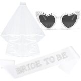 Perfect Bridal Shower Gifts: Combining style and functionality, this set makes for perfect bridal shower gifts for the bride. The pearl-embellished sash, bridal sunglasses, and veil are not only beautiful but also symbolic, celebrating the bride's journey into marriage. They are essential items for any wedding celebration