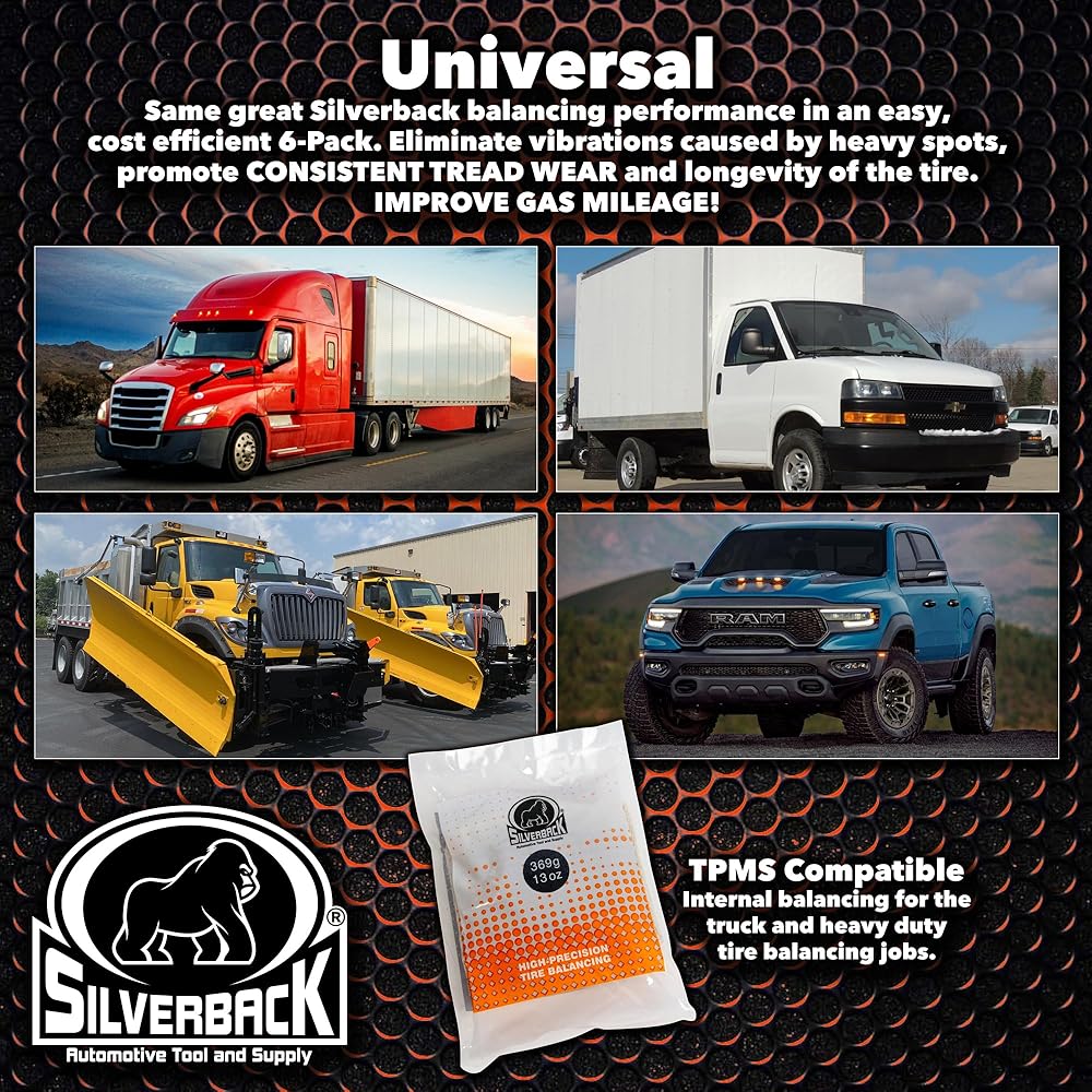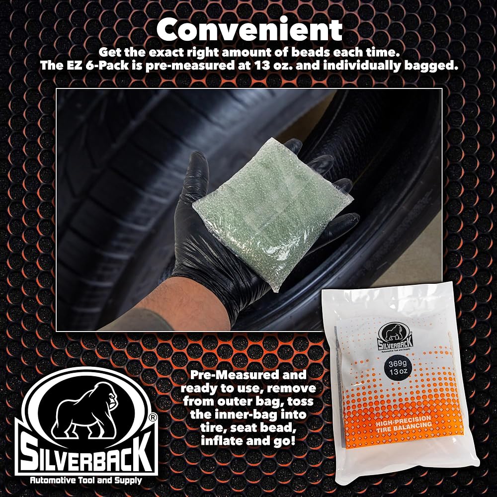 Silverback Automotive balancing beads earned their reputation over the years as a top-quality internal balancing compound that is completely safe for the tire and its components. - UNIVERSAL FIT - commercial truck, SUV, ATV and off-road tires. You can trust the Silverback Automotive internal tire balance beads. MADE OF 100% TEMPERED GLASS - the beads for tires will not break, disintegrate, absorb moisture, freeze or stick together. TPMS compatible. Big enough to never obstruct a valve core. No special valve core required - JUST SCOOP AND POUR in the quantity of beads that is needed according to the tire size (application chart is on the label). Free of silica-based coating, recyclable and reusable. The beads will outlast your tires - ELIMINATE VIBRATIONS caused by any heavy spots PROMOTE CONSISTENT TREAD WEAR and longevity of the tire - IMPROVE GAS MILEAGE - Time saving, hassle-free tire balancing solution. No machines. A bead balance means no rebalancing. The perfect tire balancer for your vehicles. Silverback Automotive has over 40 years combined experience in the Automotive aftermarket. Our passion and mission is to bring customers the best and most innovative tools.
