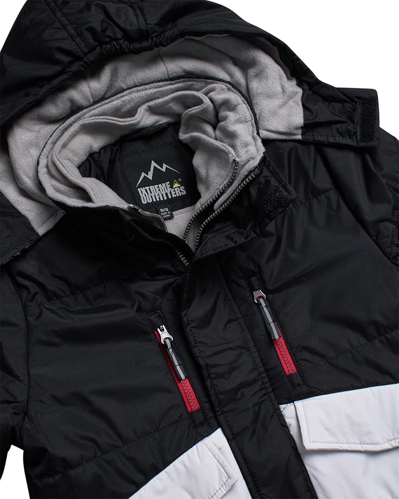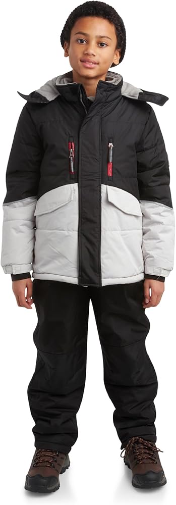TWO PIECES: Soft lined pants and a thick puffy coat with hood will keep your little boy toasty in chilly weather; This snowsuit set for boys is essential in his winter wardrobe; Enjoy your winter vacation on the slope without worrying about the cold; Perfect outfit for winter sports and hanging out in the winter