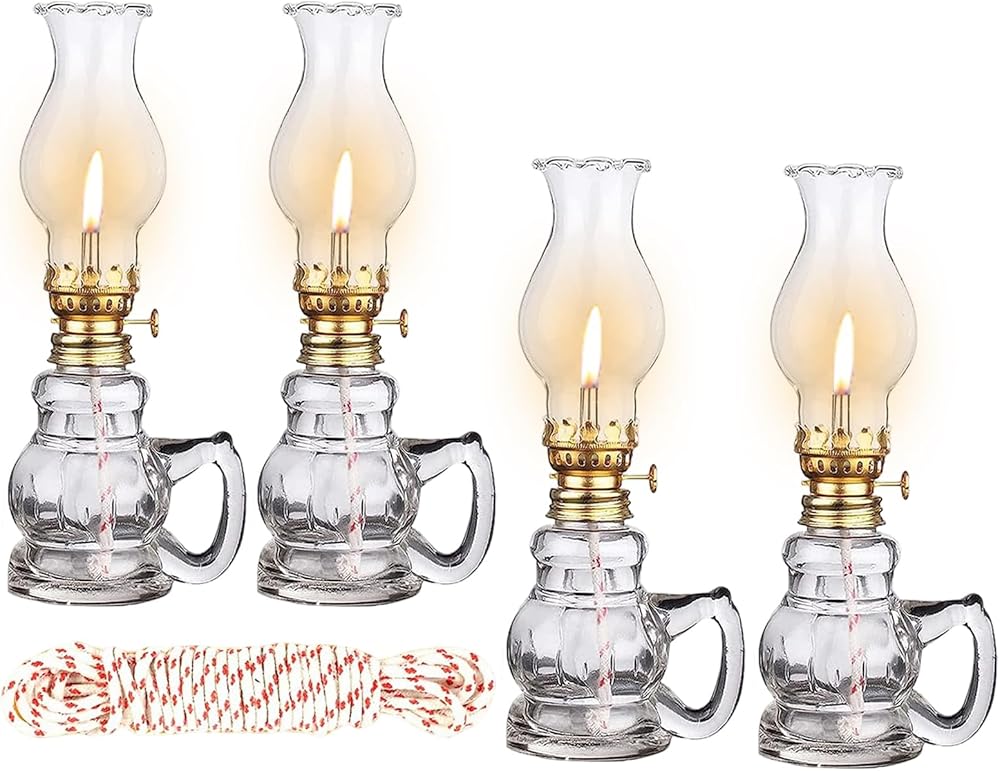 Wide range of uses: This vintage glass kerosene lamp set is suitable for various occasions, such as home decoration, candlelight dinner, outdoor camping, temple and church prayer, etc., and can also be used as emergency lighting when the power is off indoors
