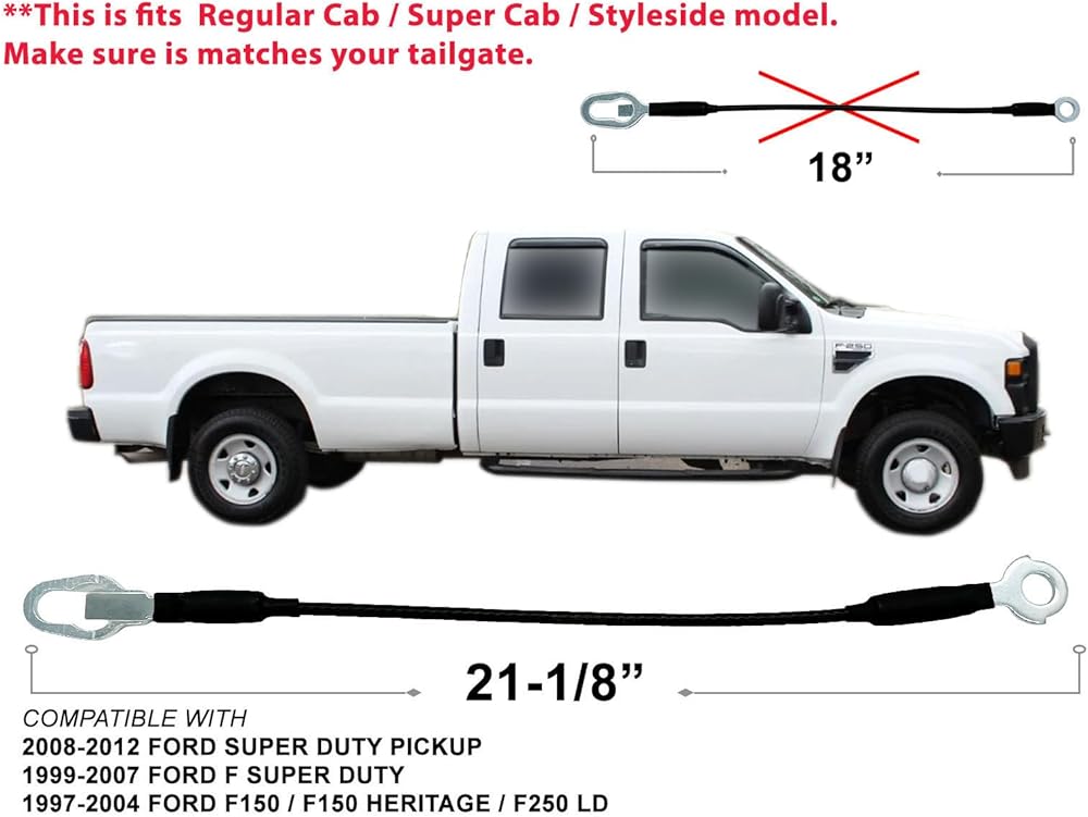 Fits both Left and Right side ( Driver and Passenger side use the same tailgate cable ) , Pair with 2 Pieces ; 21-1/8" length measures from center of end loops. Metal , With Hardware