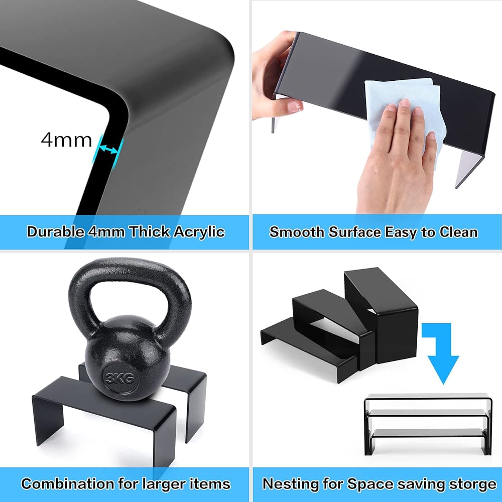 Acrylic Materials: Goabroa acrylic display shelf is made of 4mm crystal clear acrylic which is sturdy and durable, acrylic stand risers are durable and designed for a long service life