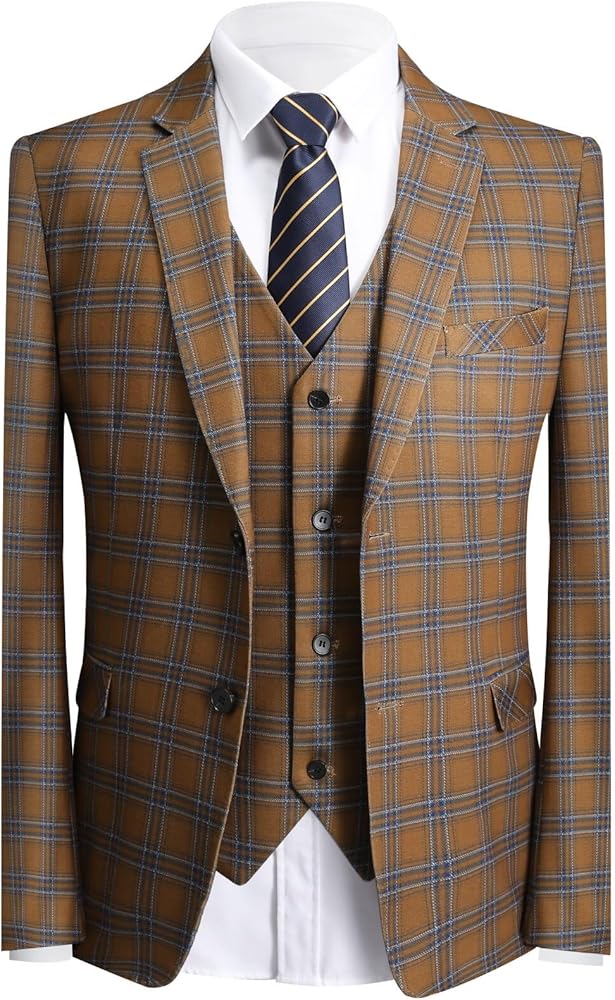 [Classic Retro Style]: The plaid rise in the Victorian era. Natural, elegant, subtle, noble as features is the features of plaid. This suit use of classic plaid with good tailoring and slim fit design, it makes you look sharp and gentle