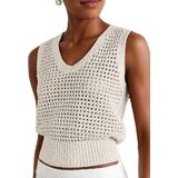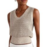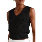 Womens beach sweaters feature in u neck, sequins, sleeveless, cropped length, cut out, see-through, ribbed, loose fit style, solid color, lightweight knit sweater pullovers.