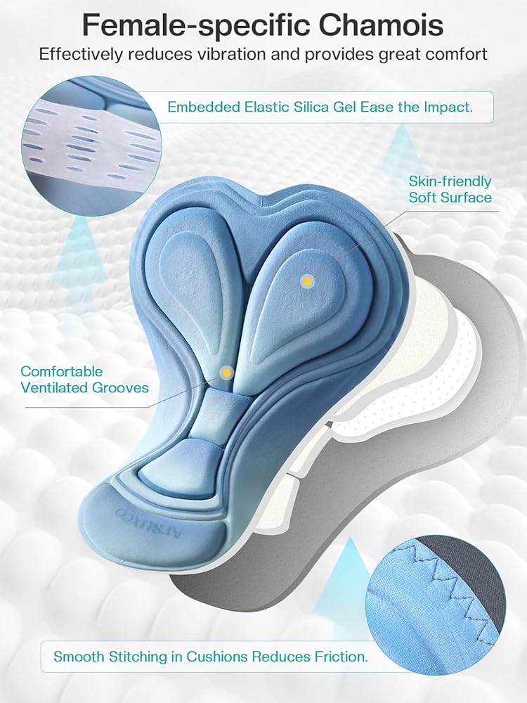Women-Specific Padding: Features a soft, skin-friendly silicone sponge pad tailored for women. It effectively reduces shock and relieves discomfort during long-distance cycling.