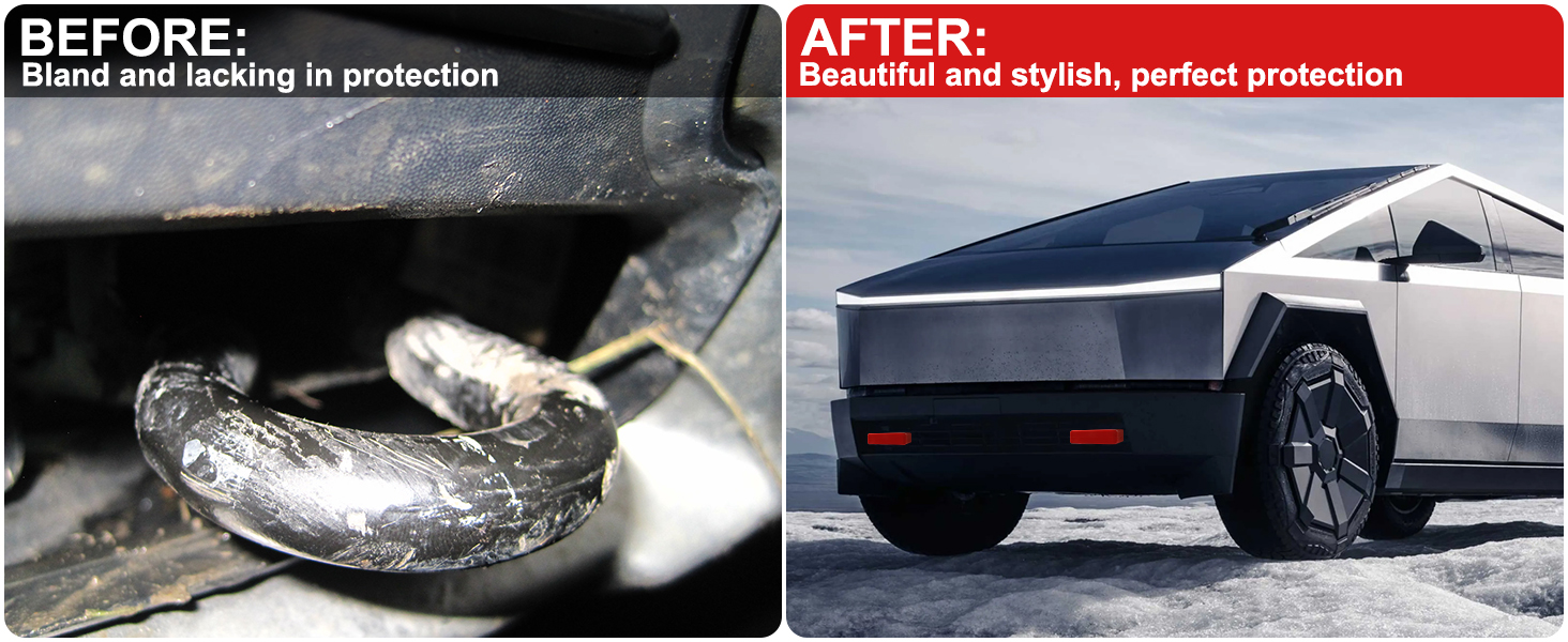 Custom Design: Fit for tesla cybertruck 2024 2025 models, uniquely designed to fit perfectly into the front bumper of your car. The size of the tow hook cover is 4.53 " x 1.18 " x 2.56 ".Please measure carefully to ensure fit before purchase.