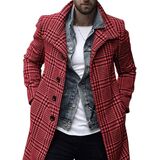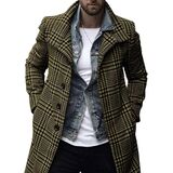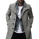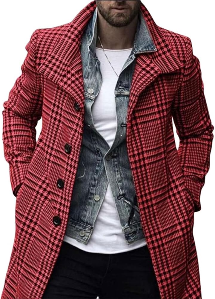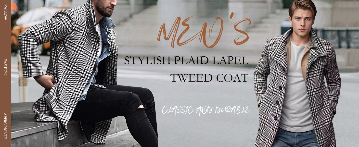 【FEATURES】Men's winter plaid coats features slim fit style, single breasted pea coat, lapel collar, long sleeves,2 side pockets, mid of thigh length, simple style brings a chic and fashion to your fall and winter.