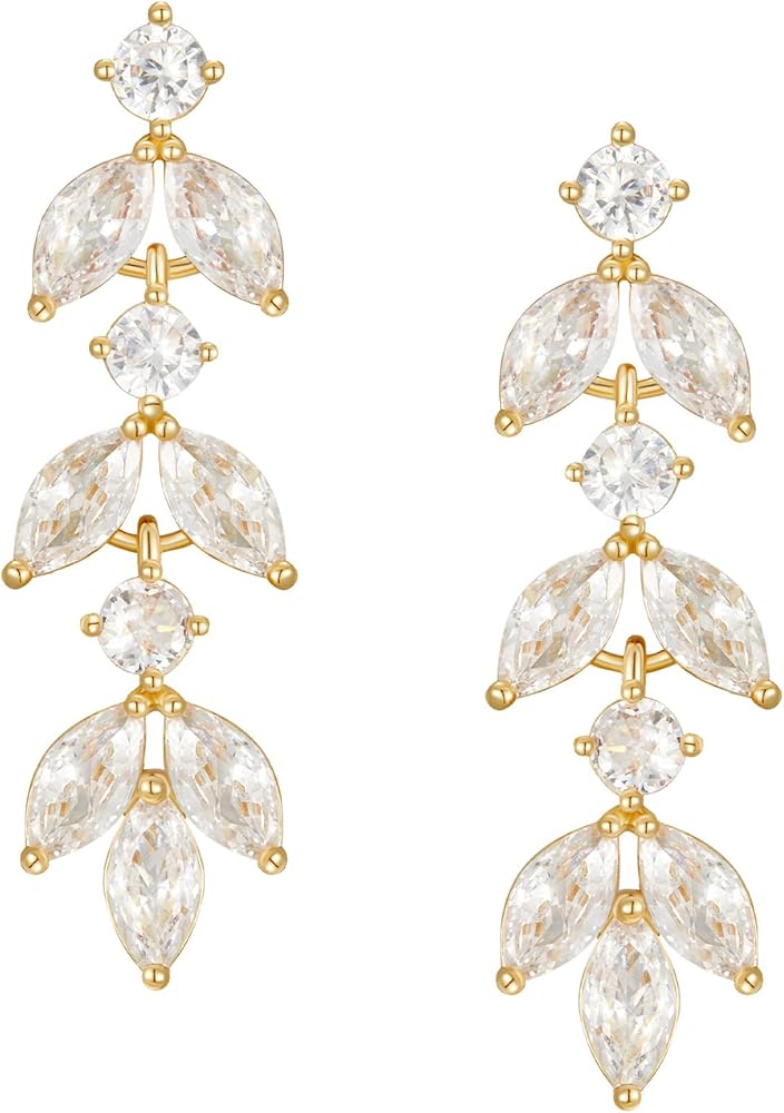 【Design】:Elegent Earrings offer a nature-inspired design resembling a floral vine featuring alternating round and marquise cubic zirconia stone clusters. perfect for the bride or wedding party, baptisms or any religious special occasion.