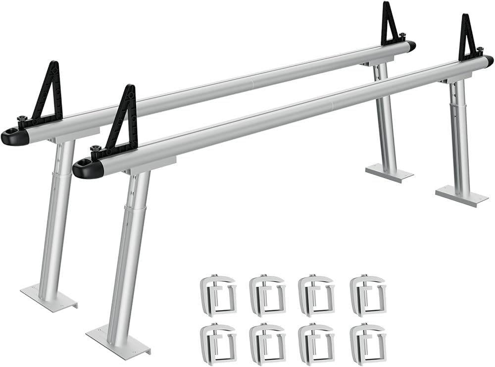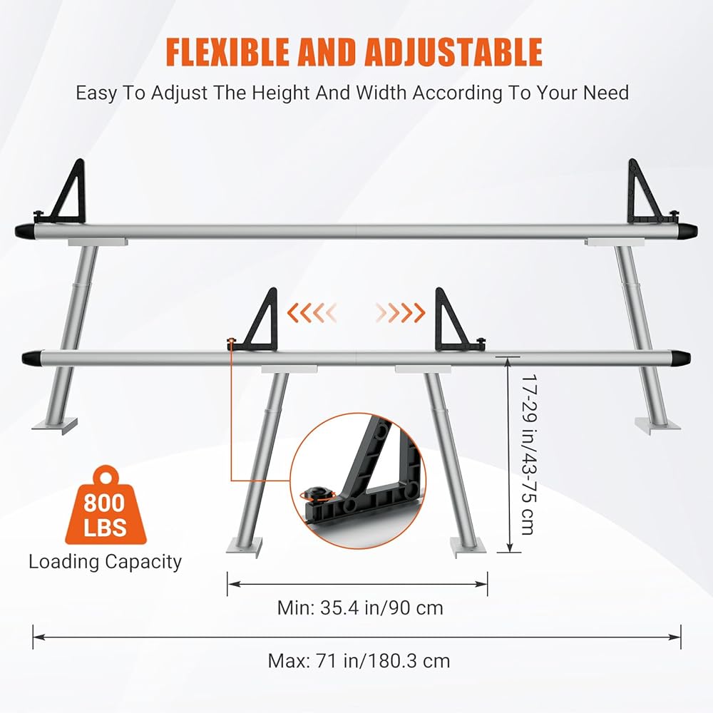 GarveeTech Truck Rack, 17-29 in Adjustable Ladder Rack for Trucks with C-Clamps, Non-Drilling Aluminum 800 LBS Capacity Truck Bed Rack, Heavy Duty Pickup Truck Racks for Kayak, Surfboard,Lumber,Ladder