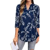 Womens Blouse Tops dressy casual / Work business professionals Shirts for women fashion new design for Spring/Summer/Fall/winter Seasons, these womens tops are perfect to wear year-round.Notch V-neck blouses with center-front pleat are flattering to hiding a bit of a tummy, 3/4 sleeve blouse for elegant lady office attire