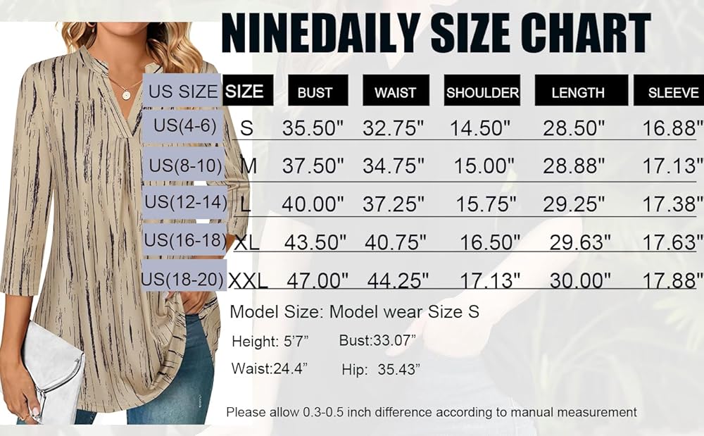 Laundry and Machine washable, Resists wrinkles, this womens tops are in correct US size,Size S= US 4-6, Size M=US 8-10, Size L= US 12-14, Size XL=US 16-18, Size 2XL=US 18-20; Please check with the size information we provide on descriptions about this Womens clothes for more details to select your size