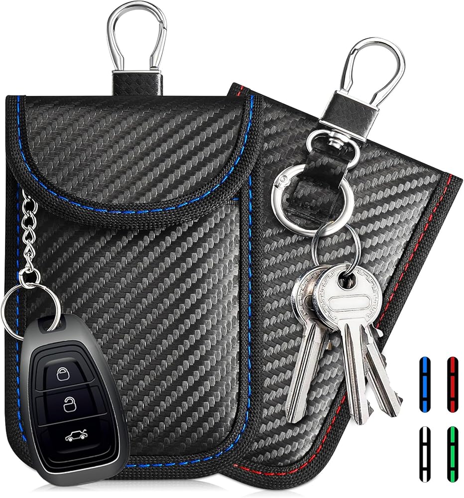 Excellent Signal Protection: WHonor key fob protector is made of top-grade carbon fiber PU and double-layer nano fabric offers excellent shielding performance; hand-stitched with strong seams, not easy to tear; 360° full-wrap design ensures the stability of the shielding and no response from your car when key fob is inside the pouch
