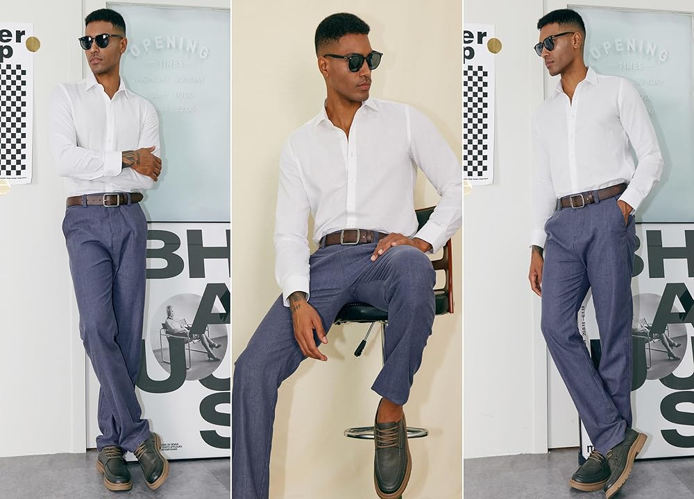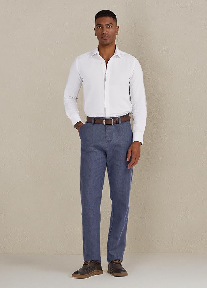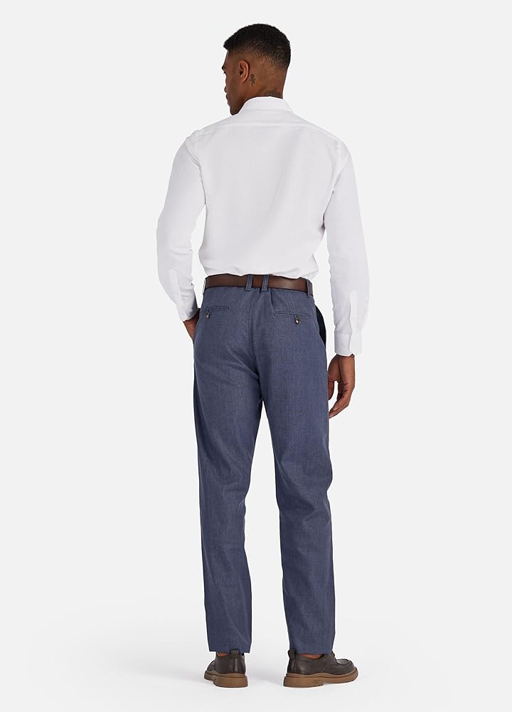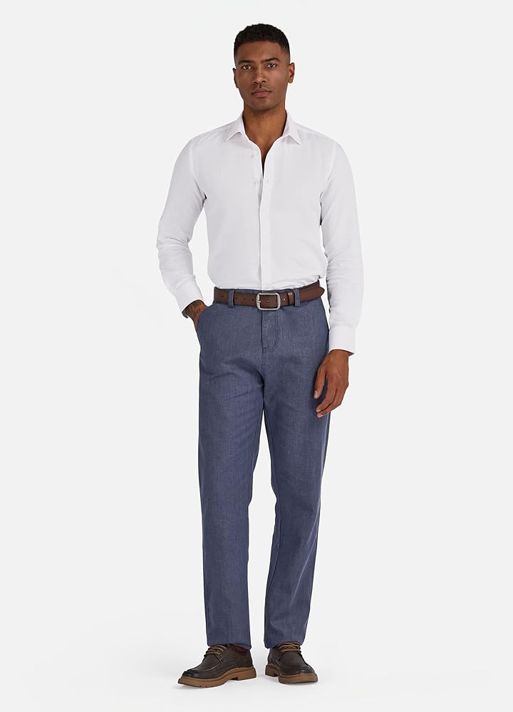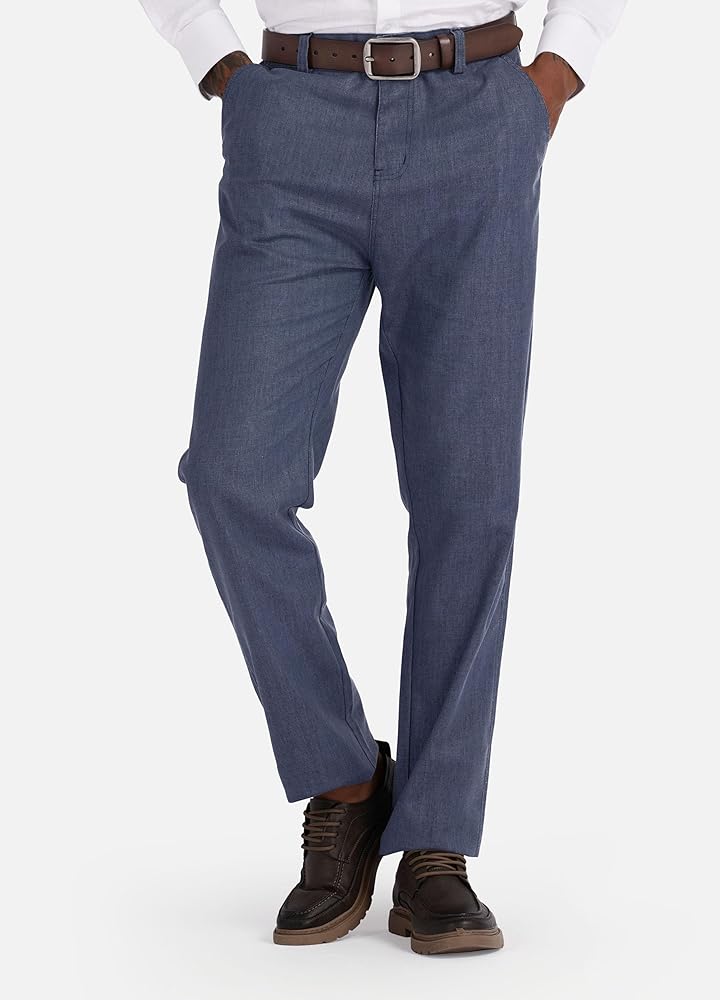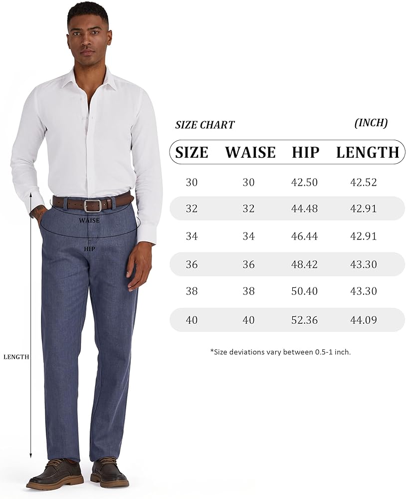 - These men's dress pants are crafted with a combination of linen and cotton fabric, providing a comfortable and breathable fit.