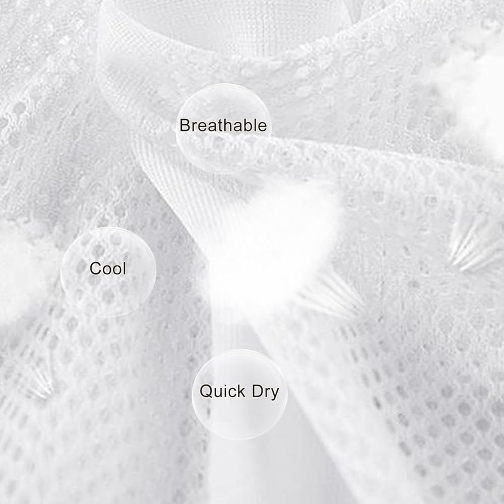 1:Lightweight & Breathable: Made from 100% polyester mesh, it's super light, lets air flow right through, and dries fast. Keeps you cool and comfy, no sweat.