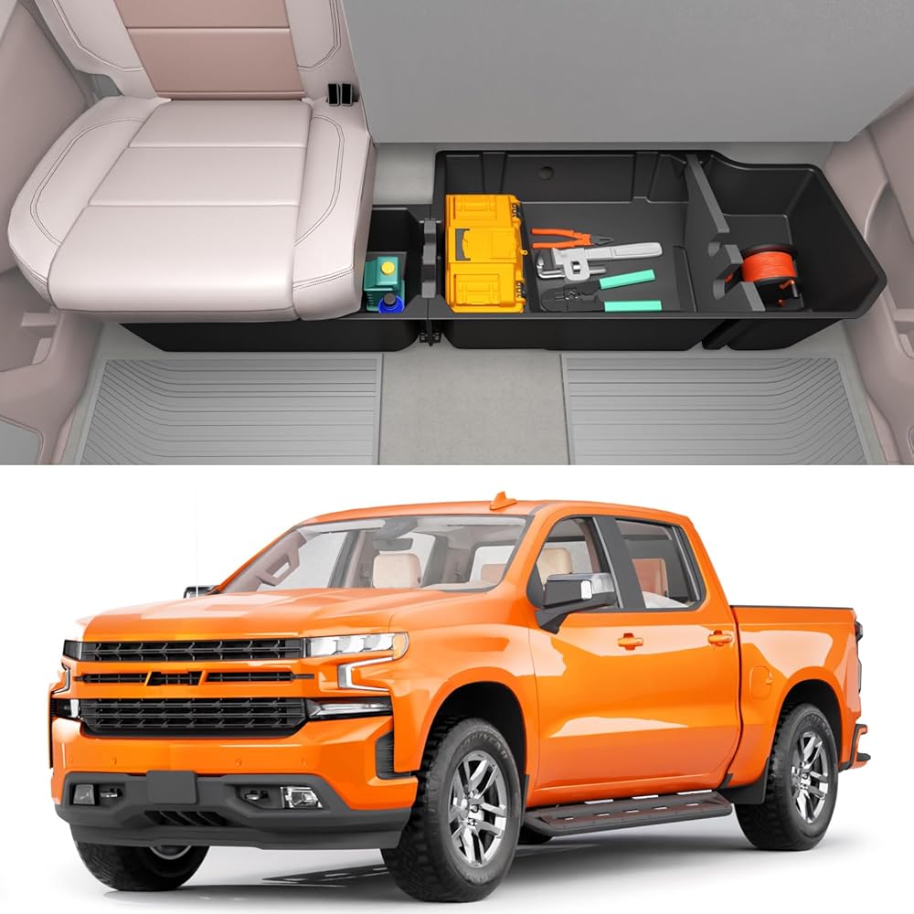 【Compatibility】 Rear seat storage fits for Crew Cab and Double Cab(4 doors) Chevrolet Silverado & GMC Sierra 1500 2019 new body(Not for Ld/Lt) 2020 2021 2022 2023 2024 2025, also fits 2500hd 3500hd 2020-2025, compatible with OE floor mats.