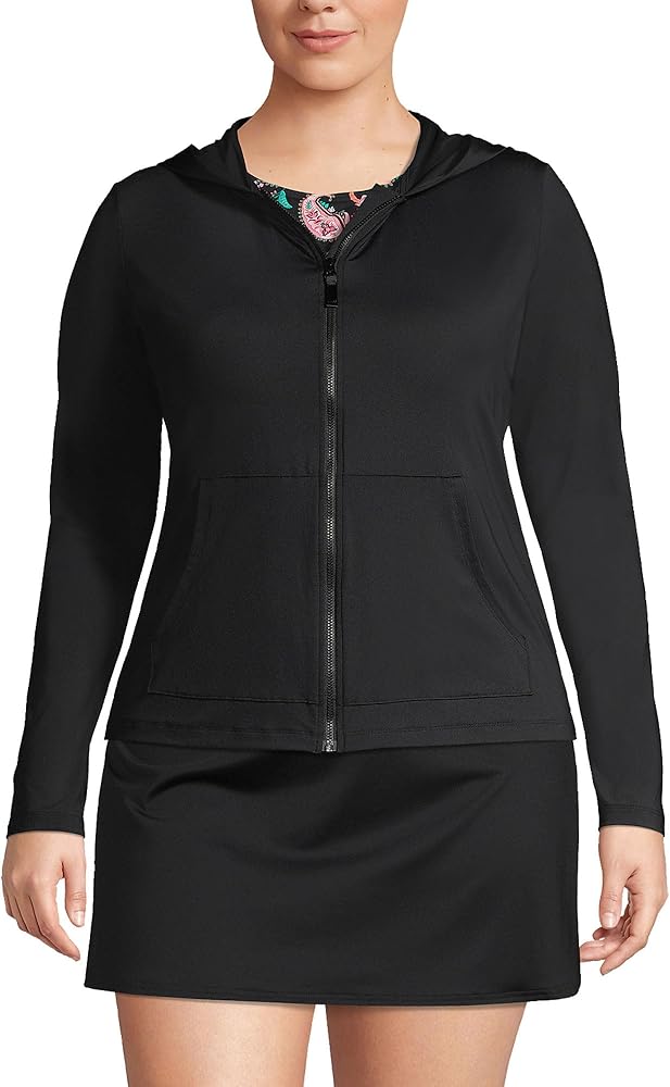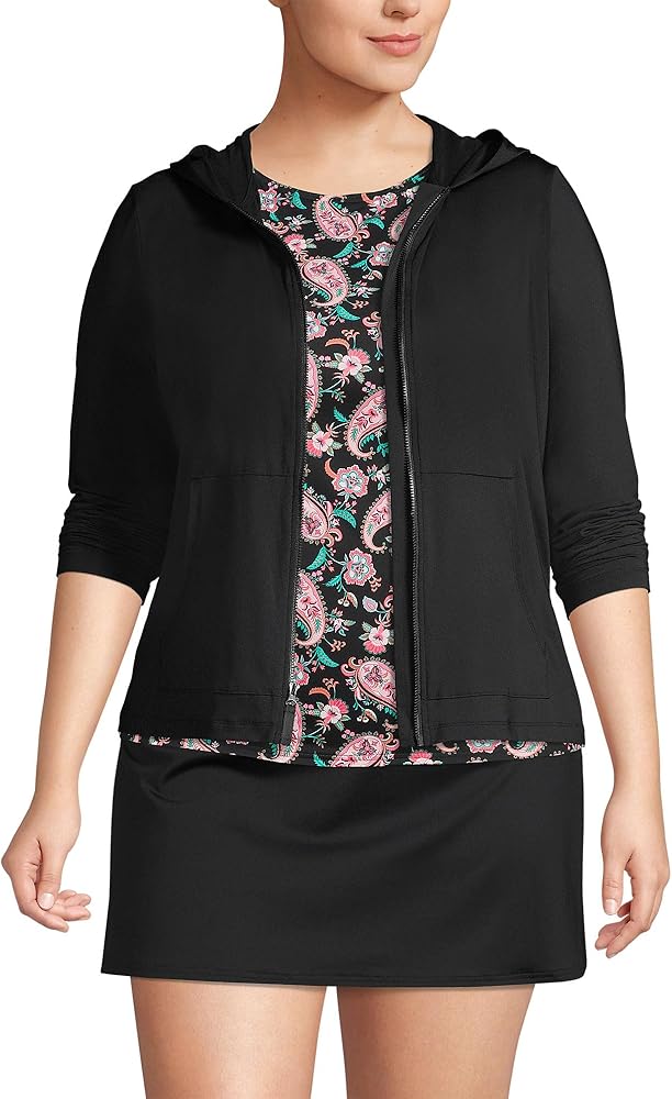 Soft and snuggly: Made of light swimsuit fabric this plus size women's hooded rash guard cover-up is incredibly comfy and provides UPF 50 sun protection. 91% nylon/9% spandex. Hand wash.