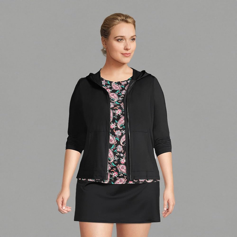 Made for outdoor fun: Take this womens hoodie zipper cover-up along whenever you go to the beach the lake or an outdoor swimming pool. It will keep your arms chest back and neck safe from UV rays.