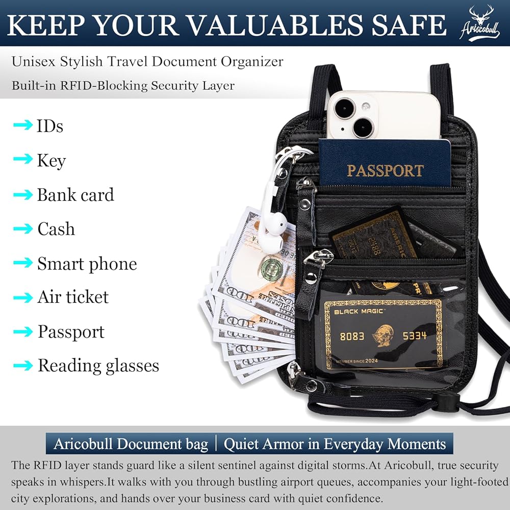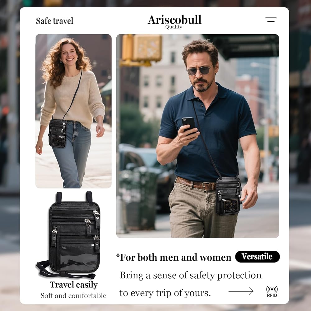 Discreet Anti-Theft Design – Our Ariscobull Neck Wallet Makes It Super Easy To Add Or Remove Items, Keep Valuables Hidden Under Clothing, Perfect For Travel And Crowded Areas.
