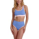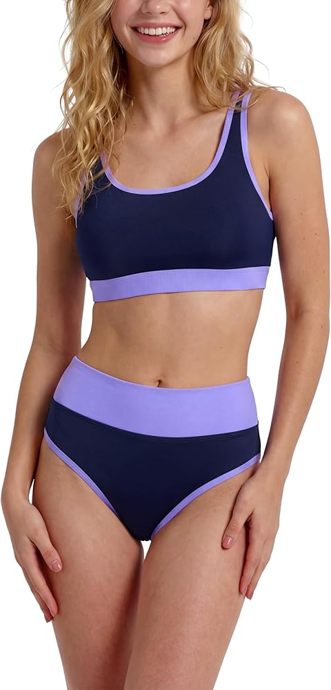 Sporty Design:Two pieces period swimsuits sporty color block U-shaped design with wide straps tops,removable bra pad,tummy control bikini bottoms to perfect the curves of the body