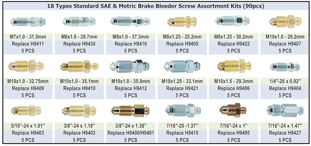 Specification 1. 5pcs M7x1.0 - 34.0mm, Replace H9411-5, 105400, 639570 2. 5pcs M8x1.0 - 26.4mm, Replace H9430-5 3. 5pcs M8x1.0 - 37.3mm, Replace H9416-5, 639550 4. 5pcs M8x1.5 - 25.2mm, Replace H9405-5, 105182, 639520 5. 5pcs M8x1.25 - 30.2mm, Replace H9422-5 6. 5pcs M10x1.0 - 27.5mm, Replace H9407-5, H9497-5, 107391 7. 5pcs M10x1.0 - 32.75mm, Replace H9409-5, 105396, 639630 8. 5pcs M10x1.0 - 35.1mm, Replace H9410-5, 107392, 639560 9. 5pcs M10x1.0 - 35.8mm, Replace H9412-5, 104509 10. 5pcs M10x1.25 - 33.1mm, Replace H9421-5, 117124, 639610 11. 5pcs M10x1.5 - 29.3mm, Replace H9406-5, 13908, 12702, 105407, 639580 12. 5pcs 1/4"-28 x 0.92", Replace H9404-5, 6446, 639540 13. 5pcs 5/16“-24 x 1.01", Replace H9403-5, 57188, 639530 14. 5pcs 3/8"-24 x 1.18", Replace H9402-5, 12701, 13901, 6858, 639590 15. 5pcs 3/8"-24 x 1.51", Replace H9401-5, H9400-5, 33512, 639600 16. 5pcs 7/16"-20 x 1.28", Replace H9415-5, 11410, 639510 17. 5pcs 7/16"-24 x 1.0", Replace H9495-5 18. 5pcs 7/16"-24 x 1.47", Replace H9427-5, H9481-5, H9483-5, 24493 19. 15pcs Dust Cap