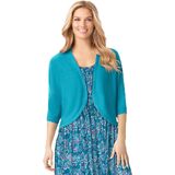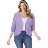 Lightweight and versatile, perfect to layer over dresses or pair with any bottoms. Chic, elbow-length dolman sleeves provide a relaxed yet stylish fit. Open front design makes it easy to wear and adds a touch of sophistication. Elegant ribbed trim along the edges for a polished look. Comfortable 20" length that's flattering and easy to wear. Crafted from 100% cotton for breathability and comfort. Easy-care, machine washable fabric keeps it looking fresh. Imported.